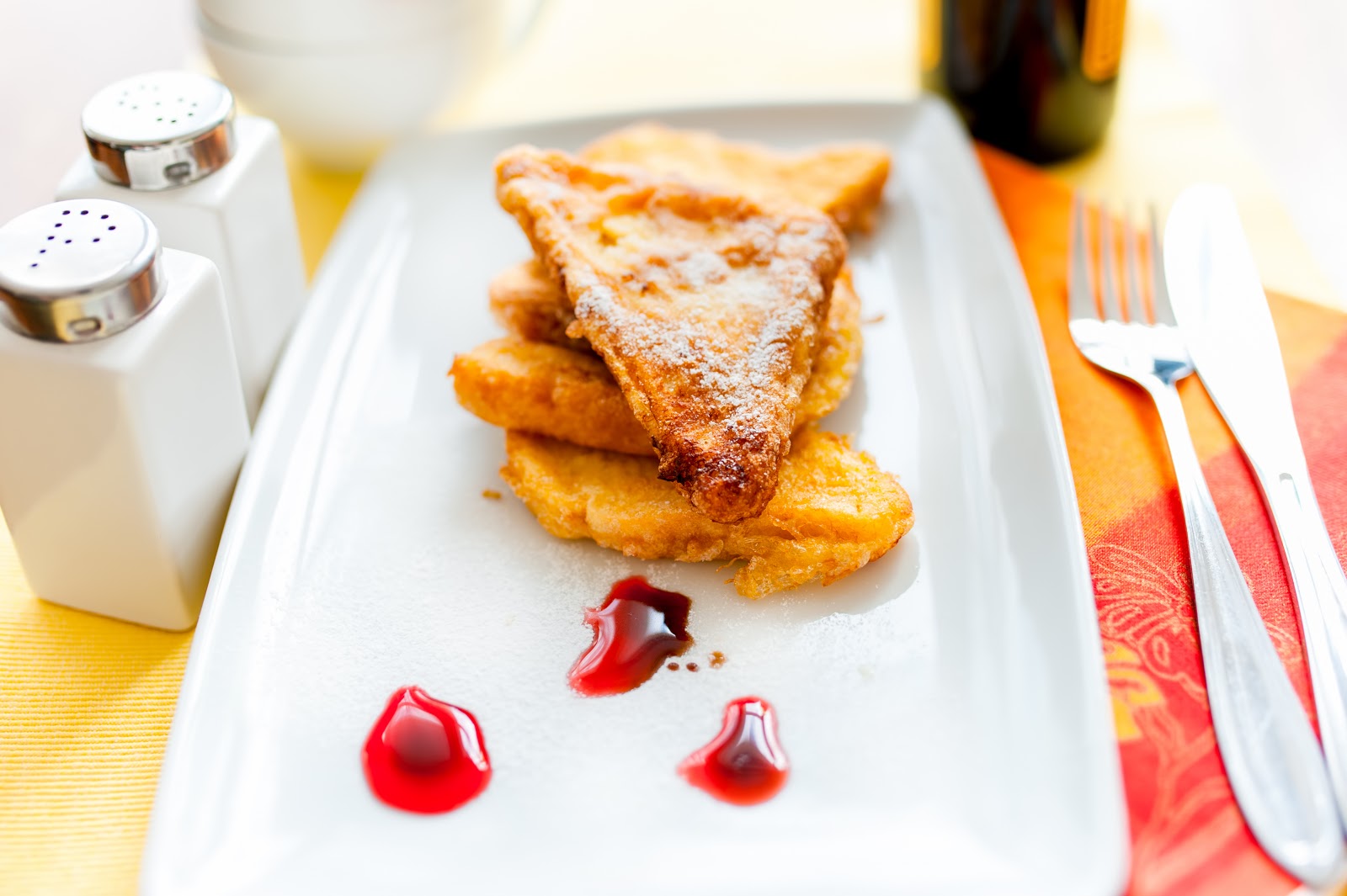 Butter in der Pfanne zerlaufen lassen. Etwas Zucker hinzugeben und dann direkt die in Ei eingelegten Toasts hinzugeben, wenn der Zucker karamellisiert. Das ganze ebenfalls goldbraun anbraten und dann auf dem Teller mit Marmelade servieren.